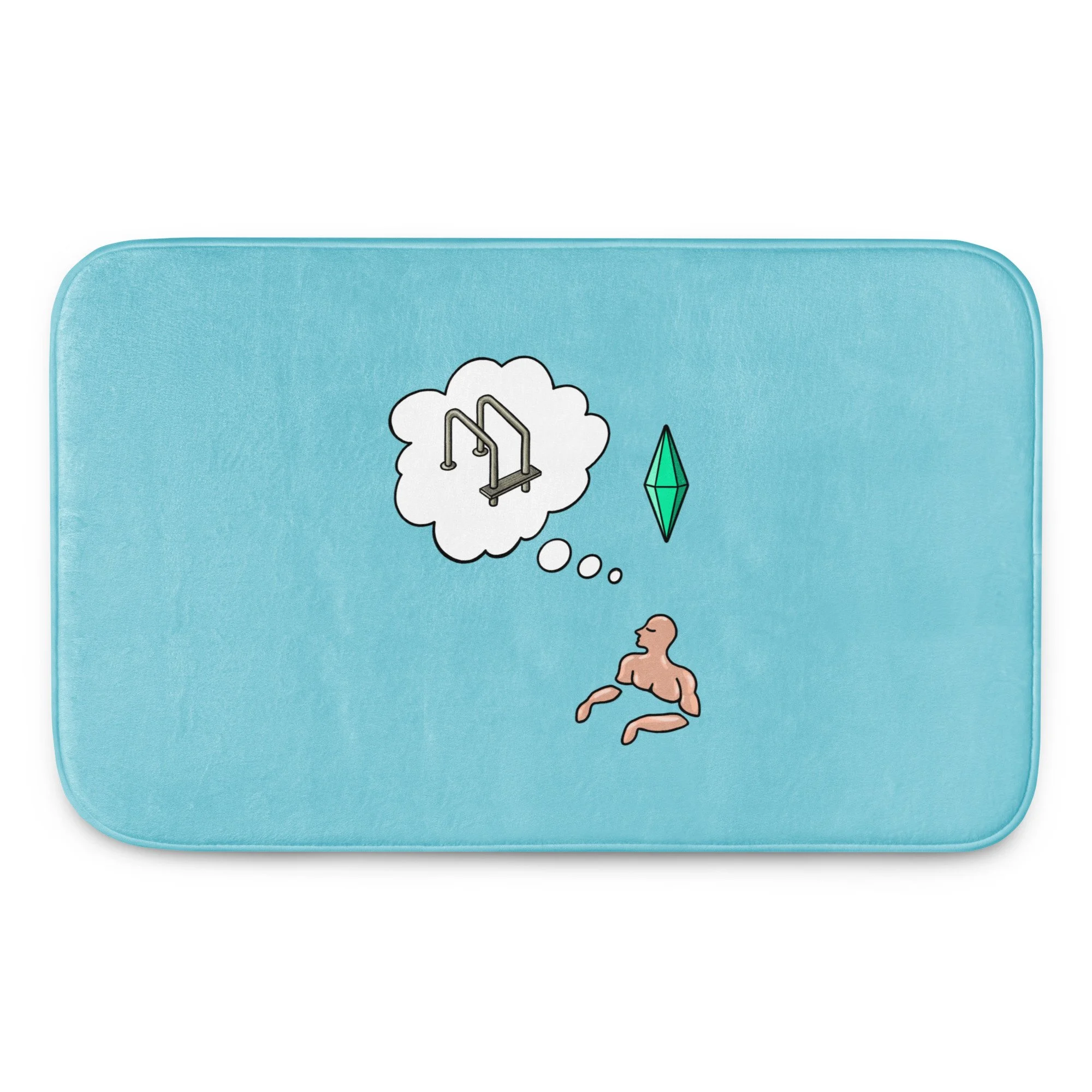 This is for an original design on a bath mat inspired by the early 2000s game and the quirky dark humor needed to navigate life's challenges. Sometimes in adulthood, it may feel like the ladder has been taken out of the pool by some higher power, upper management, or sheer bad luck. Enjoy this piece of art at home or gift it to a friend who could use a laugh—and a new bathmat.